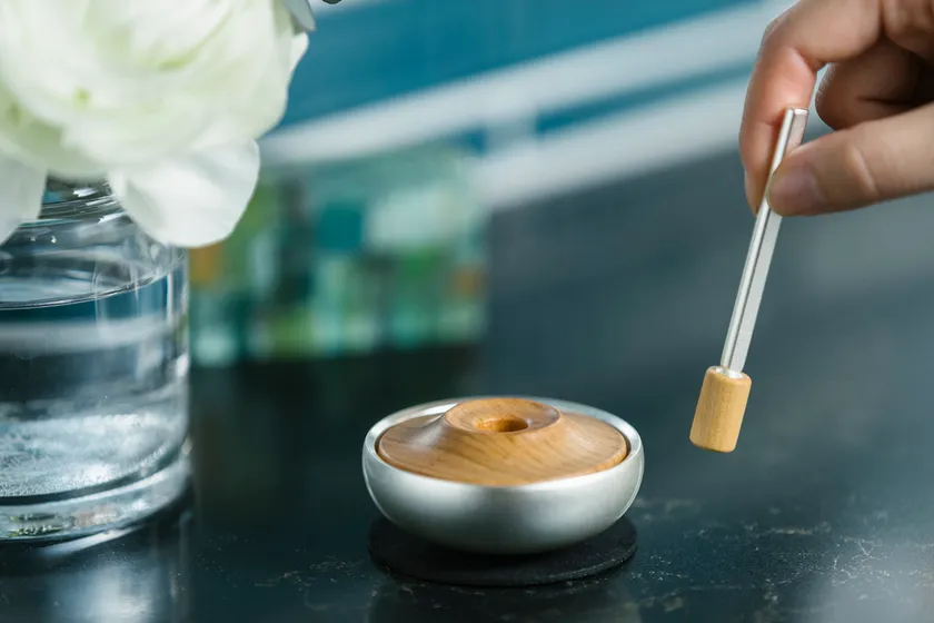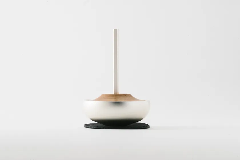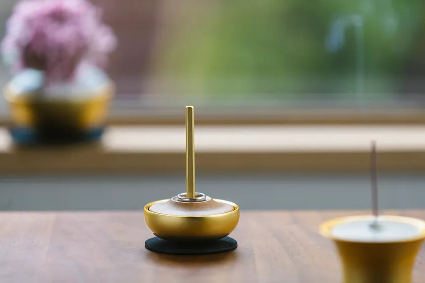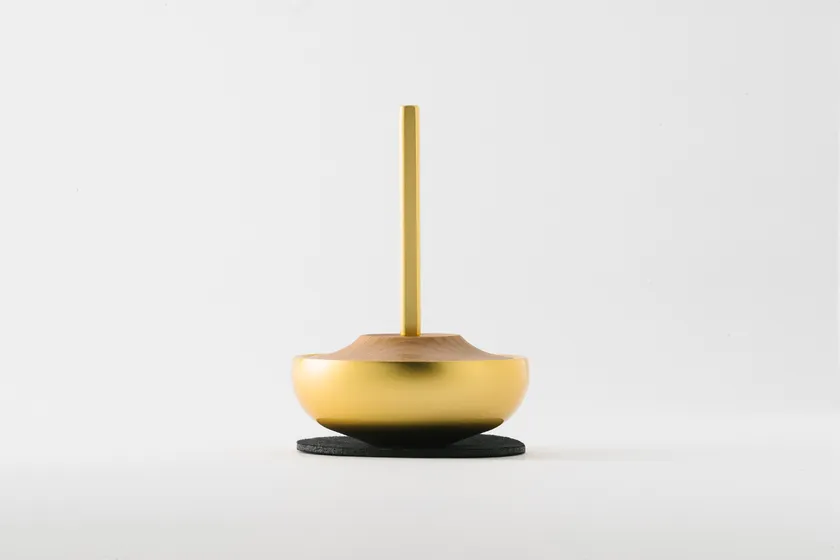 より良い音を追求し、指輪を置いたときにおりんと一体となって見えるようなデザインを目指しました。おりんの縁をシャープに見せる仕上げをしているため、丸く優しいかたちながら引き締まった印象となっています。