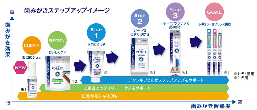 さらにペットのオーラルケアの大切さを知っていただくための「オーラルケア・ステップアップ プログラム」を提案するとともに、ペットオーナーが、ご家庭でペットのオーラルケアを習慣的にできることを目指し、オーラルケアの啓発活動に積極的に取り組んでいます。