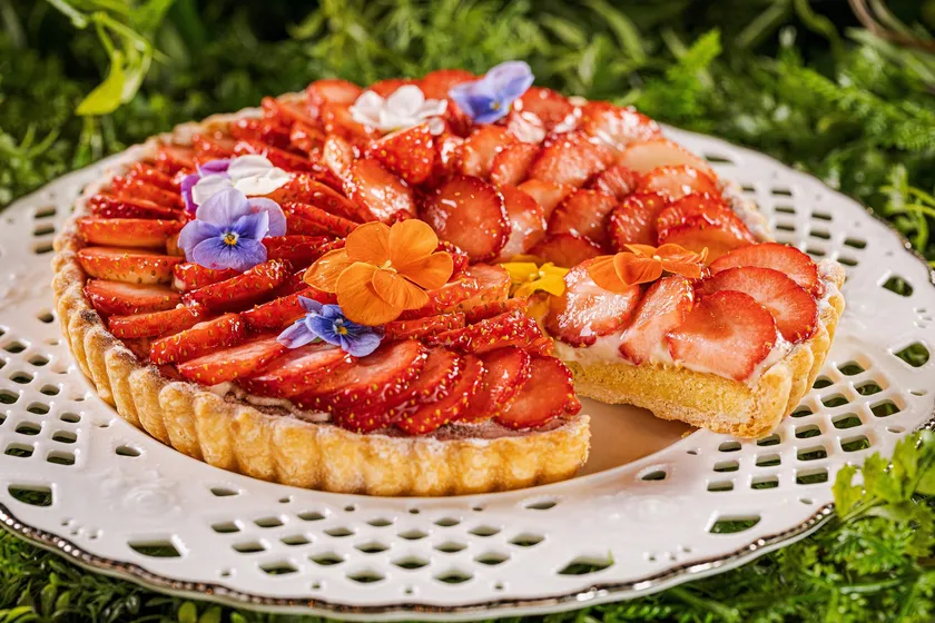 カスタードクリームの上にフレッシュ苺を敷き詰めた、贅沢なタルト