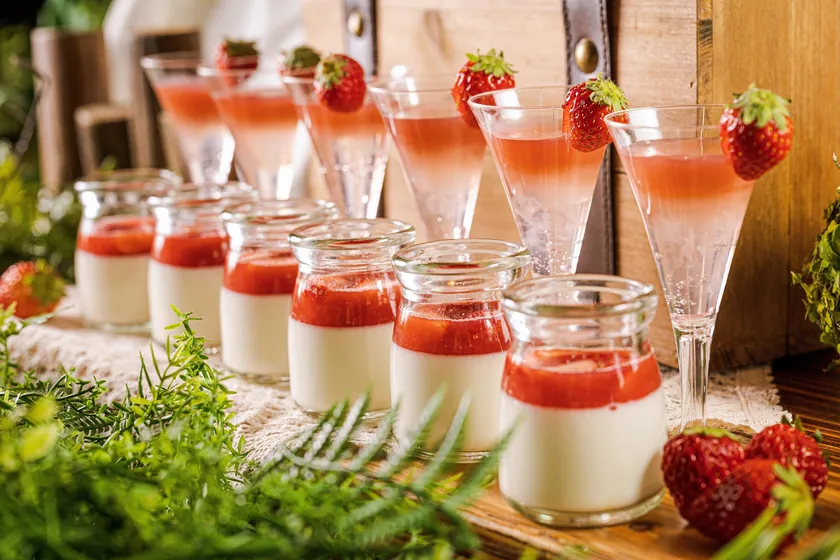 前:クリーミーな苺のパンナコッタ 後:さっぱりした甘味の苺とローズヒップのゼリー