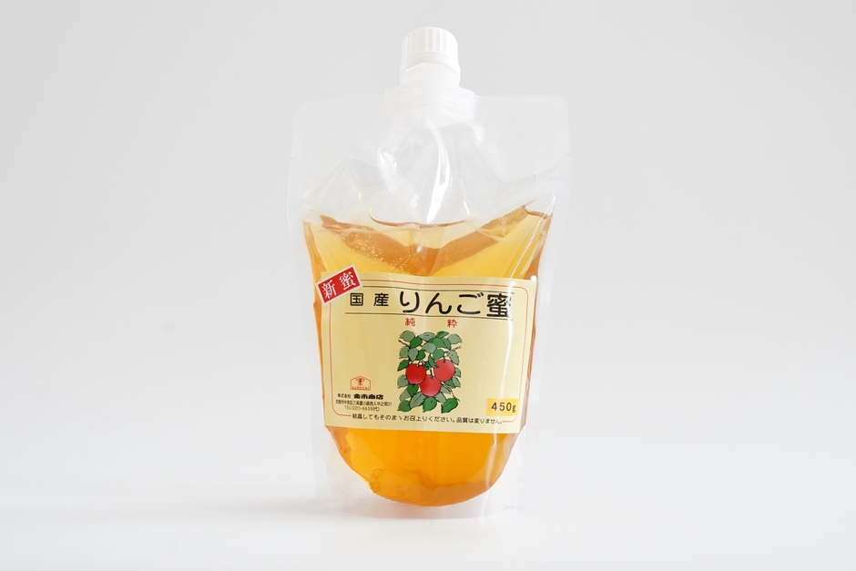 内容:青森県に咲くりんごの花から今年採れたばかりの蜂蜜を、たっぷり使えて持ち運びやすい大容量パウチに詰めました。パンケーキや紅茶、お菓子作りにもおススメです。