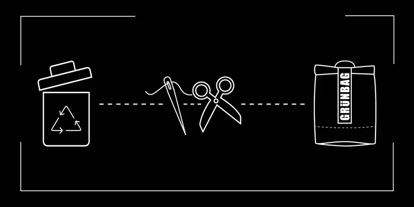本来捨てられるべき素材を生まれ変わらせ、廃棄物の山の中から丈夫で明るい色の素材を見つけ、その素材をアップサイクル。日常的に使えるカバンを作ったことが、この「GRUNBAG(グリュンバック)」の始まりです。