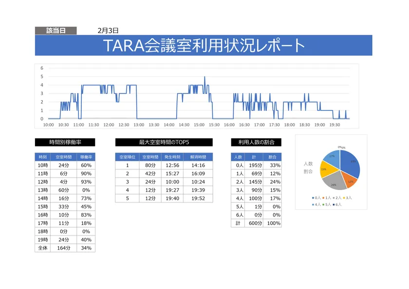 【会議室に設置した際の稼働率レポート】