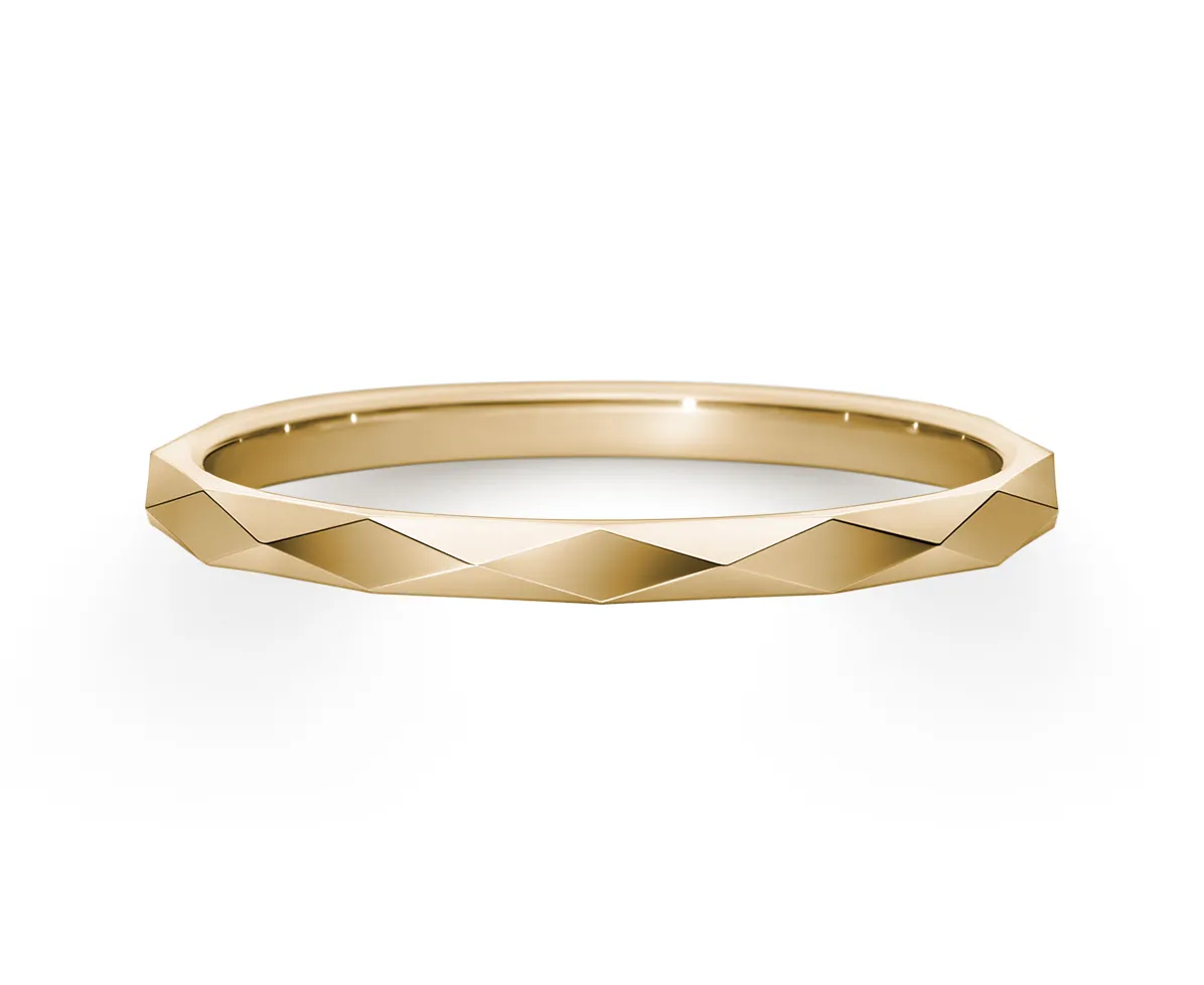 リズミカルに並んだダイヤ形のモチーフに、幸運の願いを込めて。シャープなカット面が、美しい光の造形を生み出すリング。
