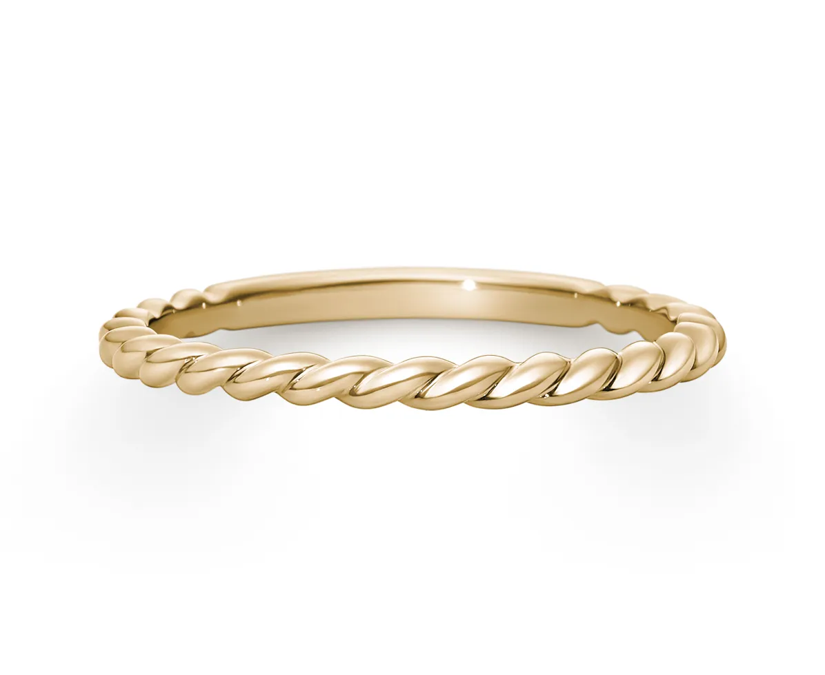 大切な人との結びつきを表すロープをモチーフに、ニュアンスある光の陰影をまとうリング。おふたりの絆に想いを重ねて。