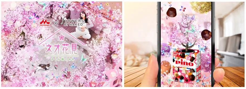 森永乳業×FLOWERS BY NAKED 初コラボ! マウントレーニアやピノにスマートフォンをかざすと、 おうちが桜のアート空間に! 今年はARで「ネオ花見」を楽しもう!