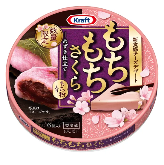商品特徴:クリームチーズにもち粉を加え、弾力ある「もちもち食感」を実現しまし た。これまでにない、和の要素を高めたもちもち食感とさくら風味・あずきを組み合わせ、上品な味わいに仕上げました。