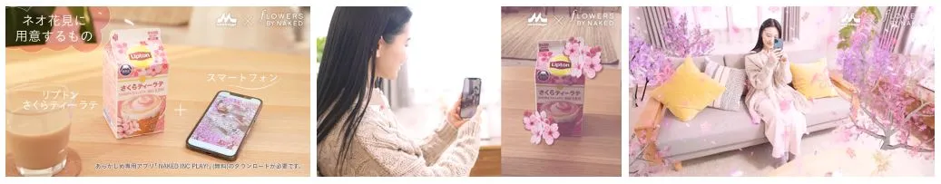 本企画では、スマートフォンをかざすとFLOWERS BY NAKEDの桜のARが浮かび上がる仕掛けが施された、森永乳業製品の春限定パッケージを発売します。「FOWERS BY NAKED」は、毎年1月に“日本一早いお花見”として話題となる、五感で楽しむ体感型アート作品。今回は、新たに自宅で楽しめる、これまでにないお花見体験を創り出しています。