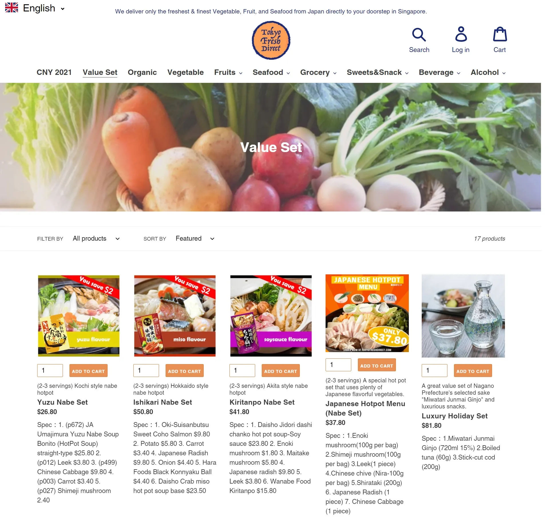 ▲バリューセットの販売ページ