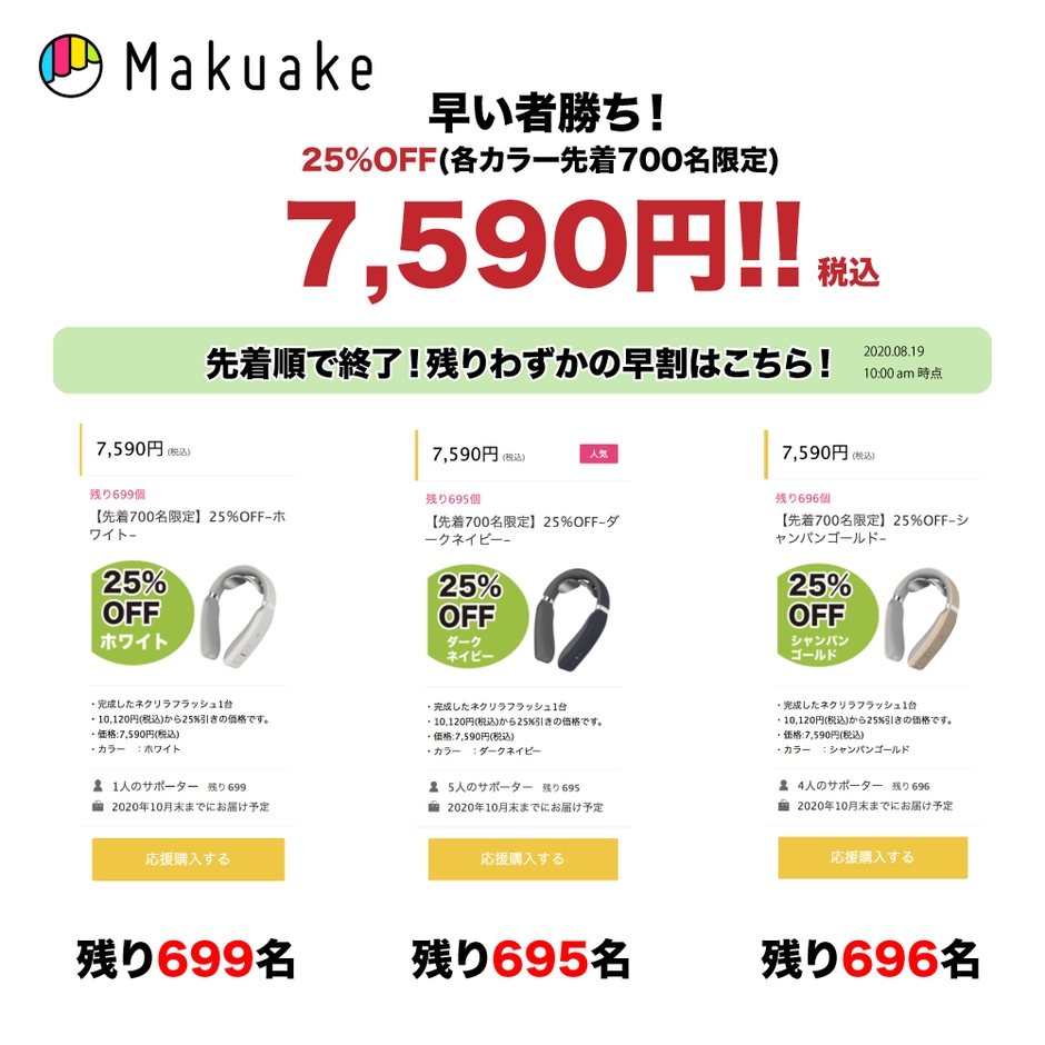 【早い者勝ち!】クラウドファンディングサイトMakuakeにて首裏EMS+温感機が7,590円(税込)で購入出来るチャンス!