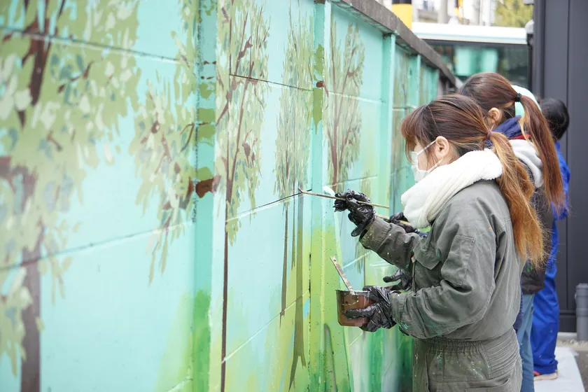 街に色どりを添えるため、施設外構の壁面には、西武線沿線にキャンパスを構える日本大学芸術学部の学生による、ペイントアートを実施いたしました。