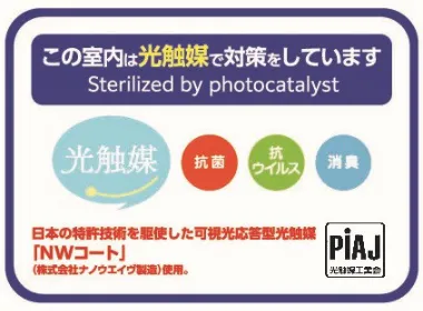光触媒溶剤をコーティングし溶剤に含まれる酸化チタンナノ粒子と光が反応することで、ウイルスや菌を長期間にわたり酸化分解し無力化する抗ウイルス・抗菌対策事業です。