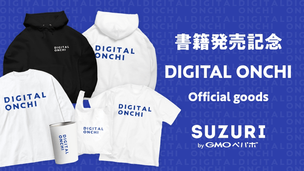 書籍発売を記念した「DIGITAL ONCHI」のグッズが、「SUZURI by GMOペパボ」内のDIGITAL ONCHI 公式ストアで販売中です。ITやWebが苦手な経営者のマストアイテム、こちらもぜひお楽しみください。