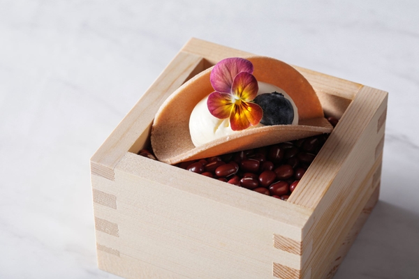 2022年12月26日(月)~2023年2月28日(火)まで、フレンチレストラン「グラマシースイート」にて、『アーティスティックフレンチ~KYO~ 』を期間限定販売いたします。“生八ツ橋”を模した甘海老と京壬生菜を使用したアミューズから始まり、京鴨の前菜や牛舌と京都九条葱のブレゼなど、京野菜をふんだんに使用したコースに仕立てました。トンカ豆のエスプーマをシナモンのチュイルで挟み込んだアバン(プチデザート)は、まるで八ツ橋のようにパリッとした食感が特徴。デザートには、宇治抹茶のパルフェを使用し、アクセントに柚子を香らせたこだわりの一品に。色彩豊かな全7皿構成の本コースは、様々な食感と風味、香りをお楽しみいただけます。