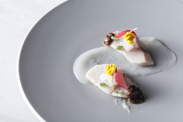 寒ブリのコンフィと聖護院蕪のクーリ 千枚漬けのコンディメント 山椒香るブール・ノワゼット