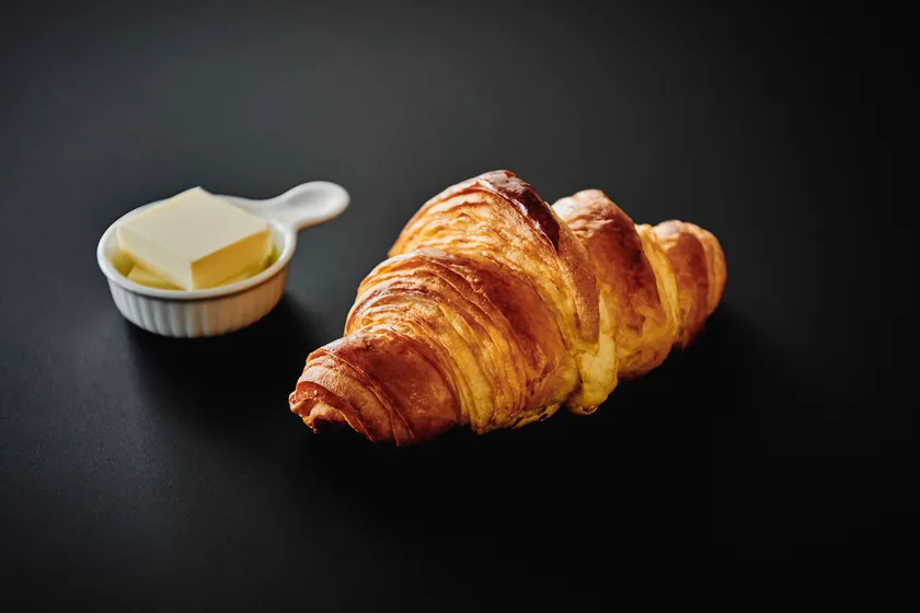 プレミアムクロワッサンには厳選された原材料を使用しています。フランス産高級発酵バター100%使用をはじめ、生地作りの小麦粉などの原材料との配合にこだわり、最も美味しくなる配合率を実現しました。