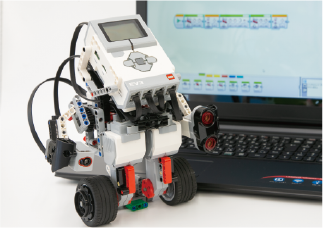 教材に「レゴ(R)教育用レゴ マインドストームEV3」を使用し、実社会で動いているロボットと近いものを作ります。