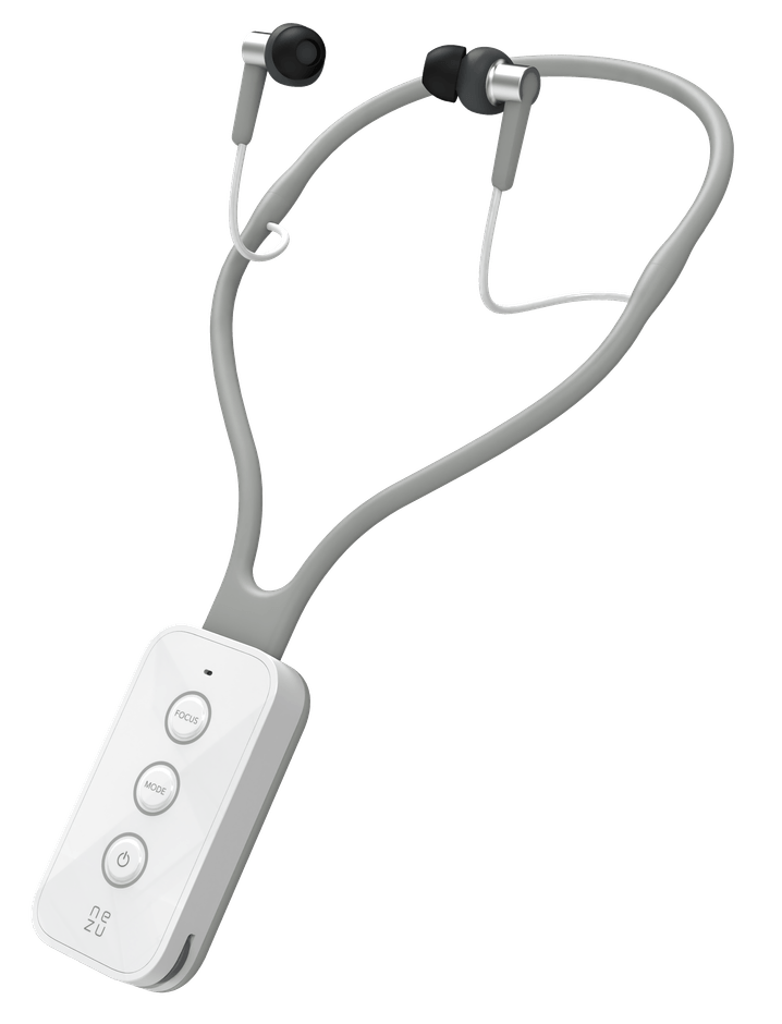 骨伝導集音器「Vibone Nezu」は、一般に使われている磁石とコイルで振動を発生する電磁式の骨伝導の課題とされる「話し声」など、中高音の伝わりにくさを克服し、広帯域、高解像度の振動音を生み出す「圧電セラミックス」の振動子を採用しました。更に、振動力学に基づく装着方法(特許取得)で振動伝導率を飛躍的に高め、さらに小型・軽量化を実現、一般的なイヤホンと変わらない形状のユニバーサルデザインの骨伝導イヤホンです。イヤホンと一体化した集音器は本体に高性能マイクを内蔵し、左右別々に音量の調整ができるのも特徴です。イヤホンは耳の大きさなどに合わせ9通りの大きさを用意し、外部入力端子でスマートフォンと接続すれば音楽も楽しめます。また、鼓膜を通さず蝸牛へ振動音を伝えられるため、耳に負担をかけず難聴予防として使用することもできます。