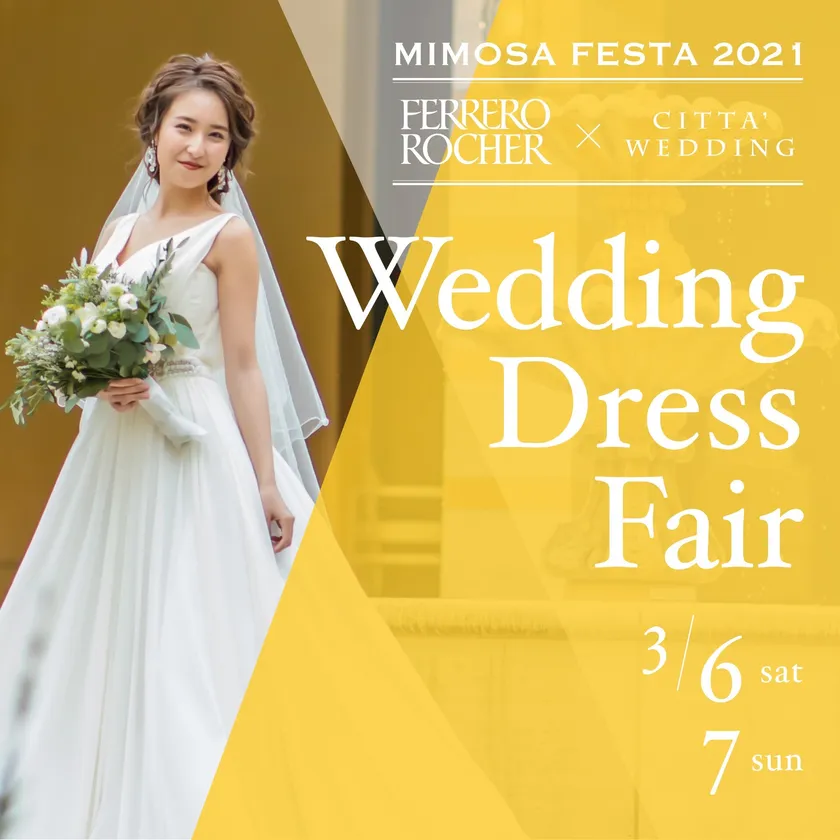 『MIMOSA FESTA 2021』開催中の3月6日(土)、7日(日)の2日間限定で、イタリア生まれのチョコレート「フェレロ ロシェ」とチッタ ウェディングがコラボレーションするウェディングフェア。憧れのブランドウェディングドレスのご試着とフェレロ ロシェ特製ブーケを持ったお姿をお手持ちのカメラで撮影します。※先着順