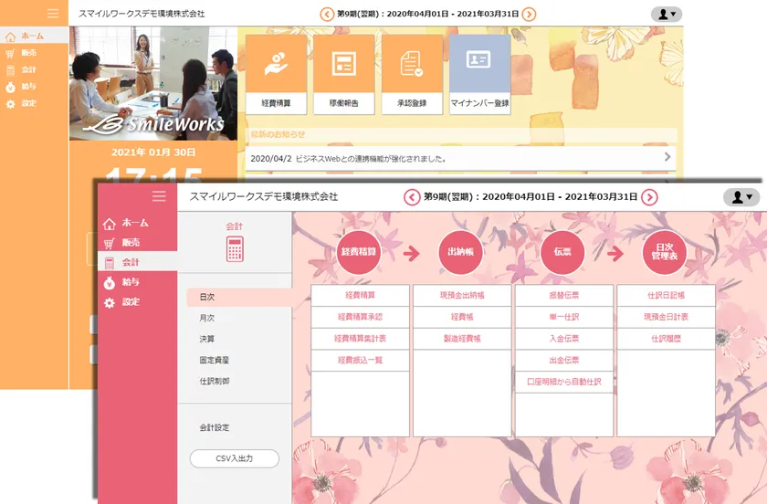 クラウドERP「SmileWorks」より、女性におすすめ 『かわいい背景変更』機能を正式リリース!