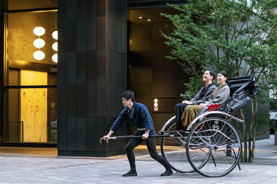 館内で寛いだ後は、お揃いの滞在着でお江戸巡りデートがおすすめです。星のや東京では、江戸情緒を現代に残す神田・日本橋・人形町エリアにある名所や銘店を知り尽くした「お江戸マイスター」が独自の楽しみ方を提案します。星のや東京の玄関から人力車に乗って、普段とは違う目線の高さで東京の街を巡ることができます。食事や買い物、観光など2人のご要望に合わせたデートコースを提案し、思い出づくりをサポートします。