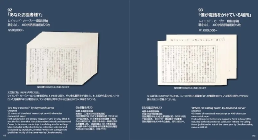マレットジャパン、特別オークションを3月20日開催 作家 村上春樹氏の直筆原稿・サイン本の数々全98ロットが出品