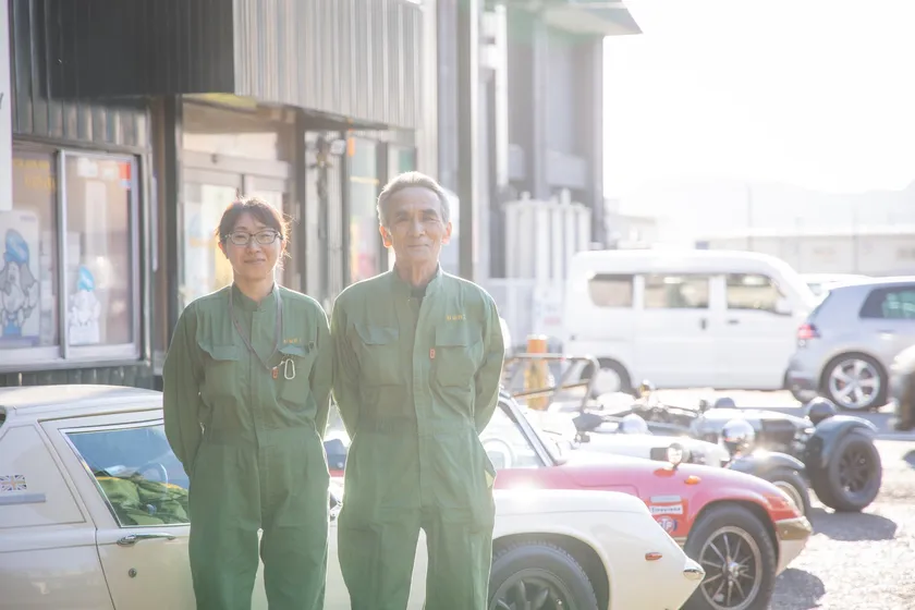 当社は1966(昭和41)年に創業した三島市にある自動車修理工場です。現在は2代目の公男を中心に5人のスタッフが修理・板金・車検など自動車整備を行っている企業です。当社の特徴は1960年代から80年代にかけてイギリスを中心に販売されていた、小排気量で軽量のスポーツカーである「ライトウェイトスポーツカー」を専門に取り扱っている部分。取り扱いメーカーは、ローバー・ロータス・ケータハムなど、各種取り扱い実績があります。