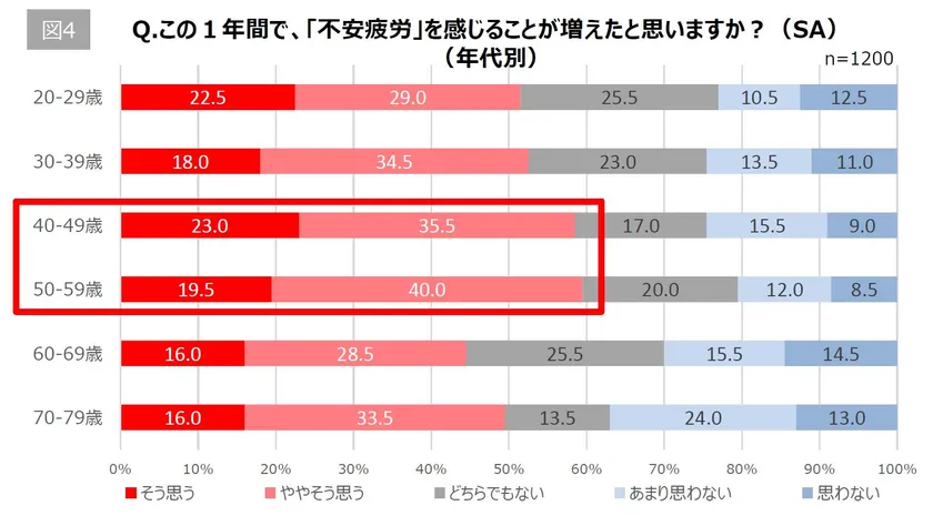 【図4】Q. この1年間で「不安疲労」を感じることが増えたと思いますか?(年代別)