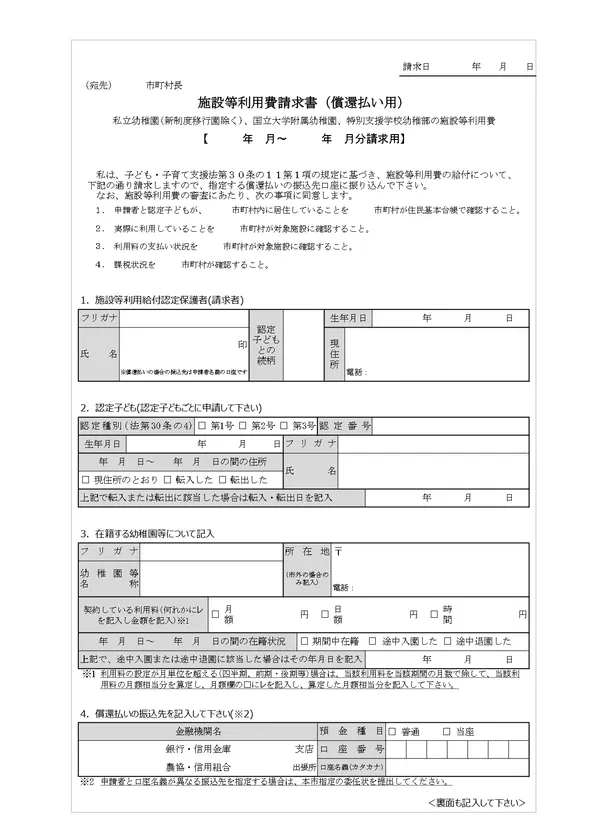 施設等利用費請求書