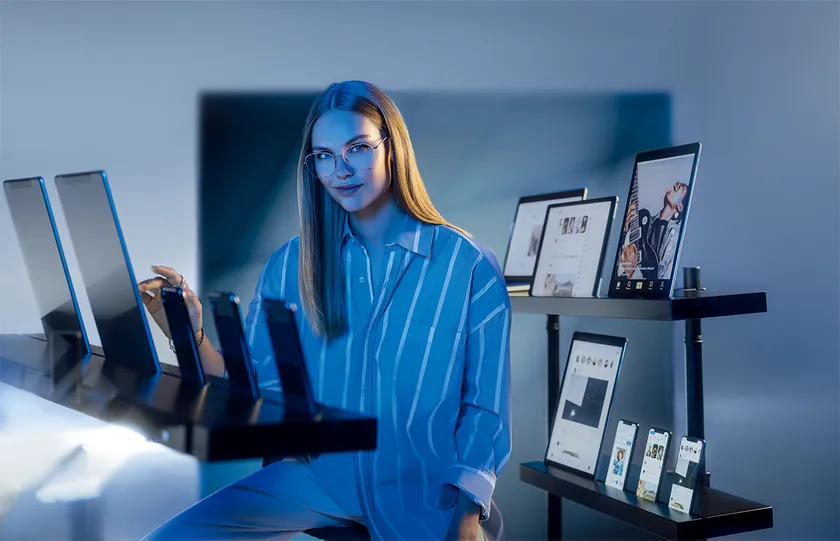 一般的な無色レンズに近い透明さを持ちながら、青色光を反射して低減するブルーライトカットレンズと比べて最大50%反射光を低減*10。装用テストの結果では、参加者の90%がZEISS BlueGuardレンズの透明度に非常に満足していると回答しました*11。
