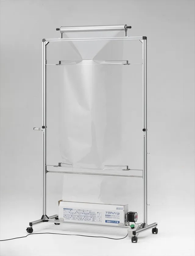 新型コロナウイルス感染予防の強化に活躍する 電動巻取り式の診察対面スタンド。 飛沫に触れナイ、浴びナイ、手間いらナイを実現した 『ABINAI(アビナイ)』をお披露目します。 ワクチン接種、各種診察、窓口業務など 医療従事者の感染リスクを低減します。 2021年2月インテックス大阪で開催される 「医療と介護の総合展」にて初お披露目