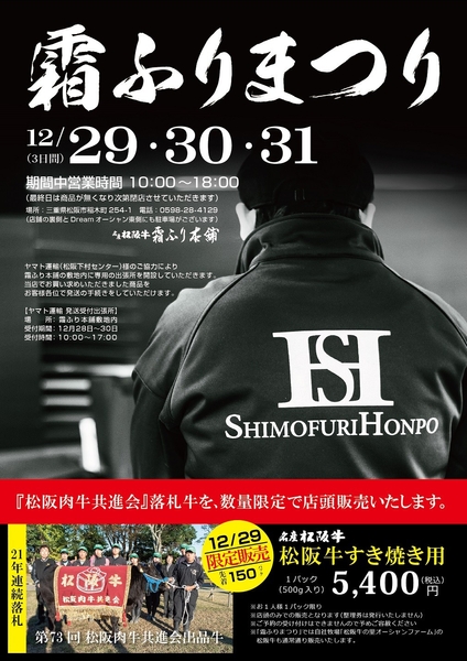名産 松阪牛「霜ふりまつり」開催のお知らせ