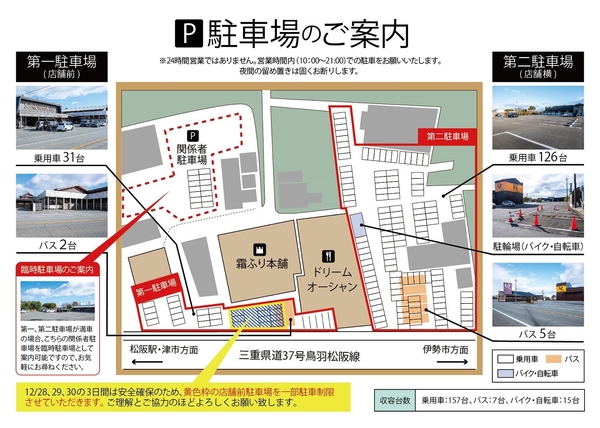 駐車場 :店舗の裏側とDreamオーシャン東側にもございます。