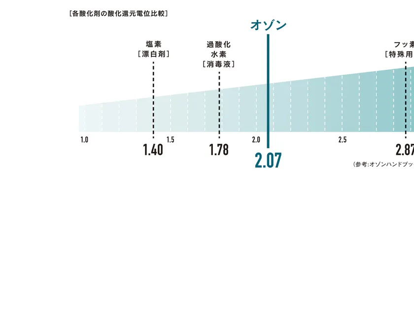 漂白剤や消毒液よりも酸化しやすく、使用後は酸素や水に戻って安心安全