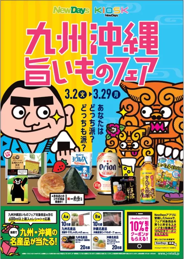 株式会社JR東日本リテールネット(本社:東京都新宿区西新宿/代表取締役社長:高橋 眞)が運営する「NewDays」「NewDays KIOSK」では「九州沖縄旨いものフェア」を3月2日(火)より開催いたします。