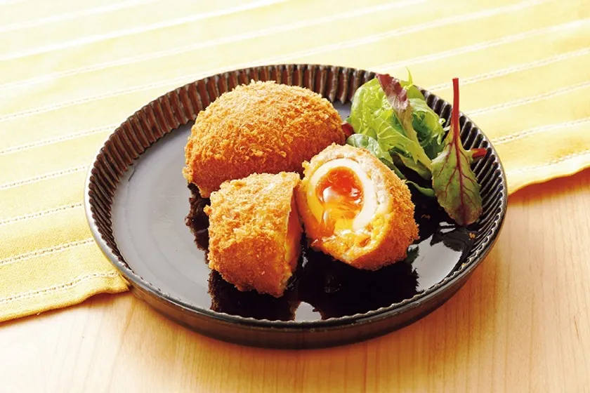 鹿児島黒豚を使用したメンチカツ。半熟卵が丸ごと1個入っていて、黄身のとろ~りとした食感が魅力的です。