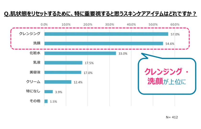 [3] 肌状態をリセットするために重要視するスキンケアは「クレンジング」が1位!
