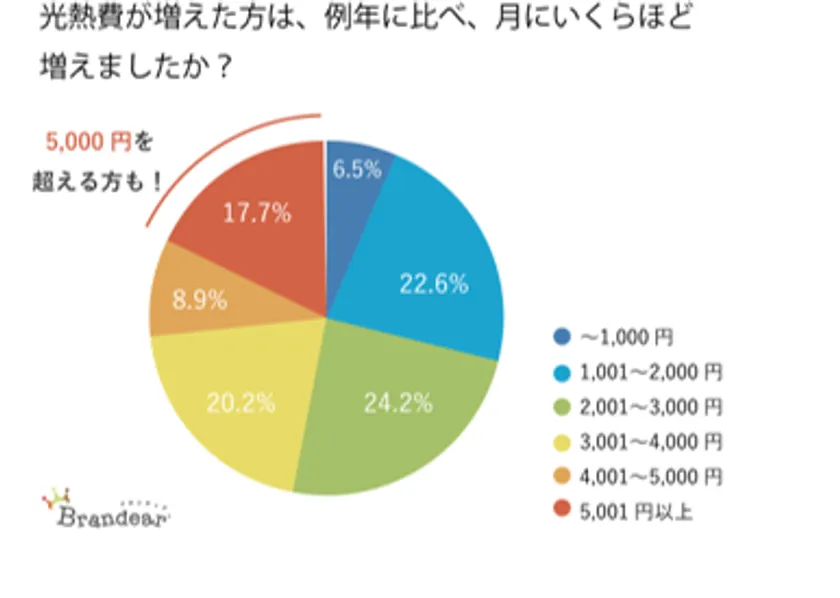 ▼光熱費が増加した方は1,000円以上の増加が93.5%。