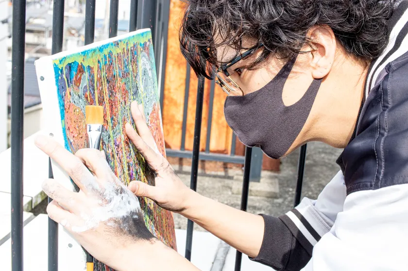 クラウドファンディングのリターン(支援の返礼)として、いくつかの「作品」を用意させていただいたのですが、それまで「服」で表現していた自身の経験やそのとき感じた想いを、服だけに拘らず、キャンバスで表現するようになったのは、コロナ禍の自分と向き合う時間の中、じっと耐えていることができず、新たな特技をつくろうと始めたのがきっかけです。