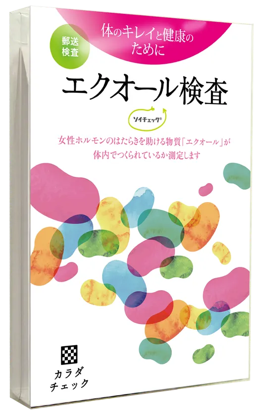 女性ホルモンに似た働きをするエクオールがあなたの体内でどのくらいつくれているかをチェックできる、自宅で尿を採り郵送で送って結果を受け取るセルフケア検査キットです。自分に合った女性ホルモン対策を選びたい方、美容や健康のために大豆習慣を見直したい方におすすめです。
