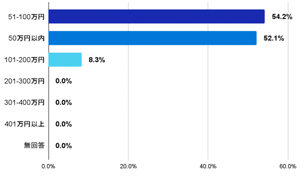 「希望金額との差はいくらまで許容しますか?」という質問に関しては、「51万円〜100万円」が54.2%、「50万円以下」が52.1%となりました。