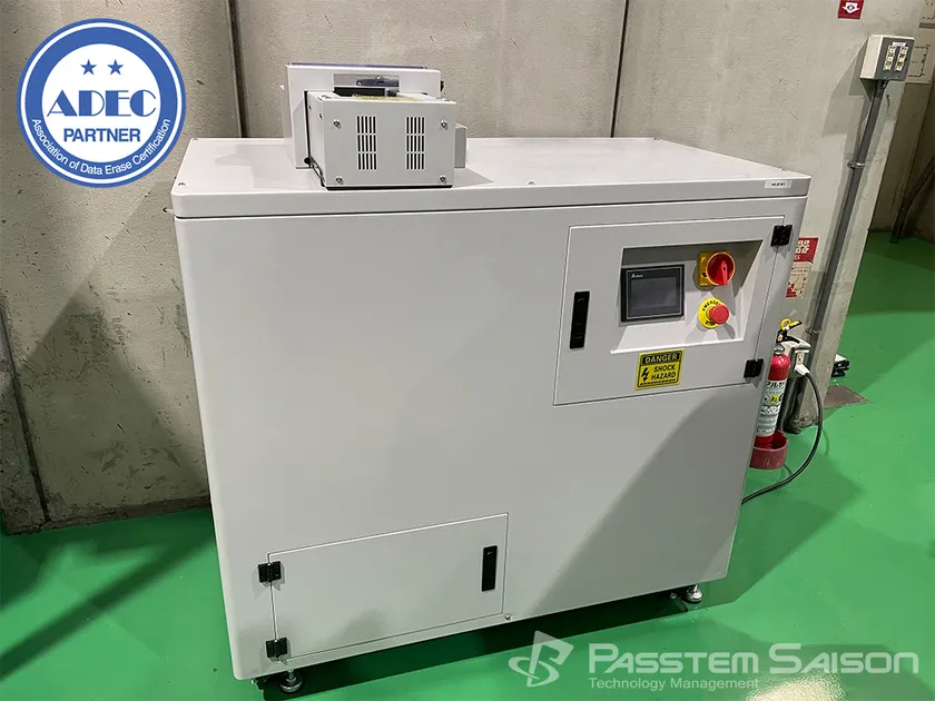 昨今、一般ユーザーにおいても、電子機器の記憶媒体における個人情報の取り扱い等に関心が高まっているなか、データ消去についてより確かに安心、安全が求められてきております。パステムセゾンは確かにデータ消去が実施されている事をADECという第三者機関の証明を得る事により、お客さまに安心安全なサービスの提供を行っております。