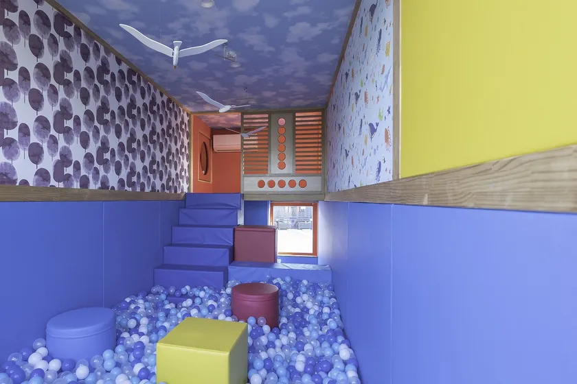 ・千葉県市川市にて展開する「キッズフル」の遊び場をコンテナ内に再現。ボールプールとボルダリングルーム双方をトンネルで連結することが可能で、遊ぶ空間の自由度が高まります。