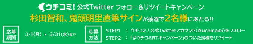 ウチコミ!公式Twitterフォロー&リツイートキャンペーン