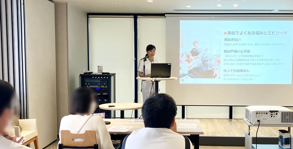 講座終了後には、近隣中学校の先生との意見交流の場を設け、不登校の現状や教育現場での課題について共有しました。医療と教育が連携することで、子どもや家庭を多角的に支える体制づくりにつなげています。