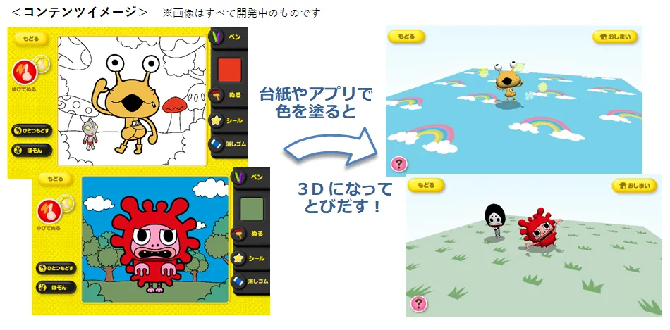 併せて、NTTドコモの知育サービス「dキッズ」にて提供中の【とびだす☆おえかき】でもご利用いただけます。