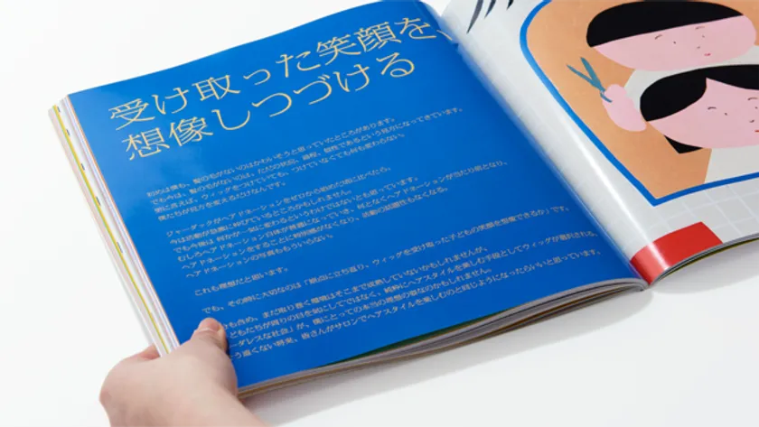 また、ヘアドネーションに賛同する15名のイラストレーターの個性豊かな美しいビジュアルで、1人1人のインタビューページを構成しました。ヘアドネーションの持つ明るさ、良さを感じてもらえる、読み込んでも面白く、眺めるだけでも楽しいデザインに仕上がっています。