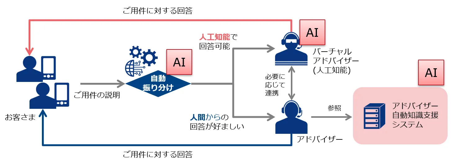 両社は、本システムの運用を通じたAIの学習や、さらなる共同実験を通じて、お客さまに対してAIが音声で回答する「AIによる自動通話対応=バーチャルアドバイザー」の実現を目指します。