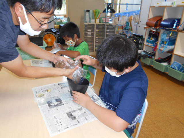 1. 発芽のメカニズムなどを学びながら、実際に苗の植え付けを体験。