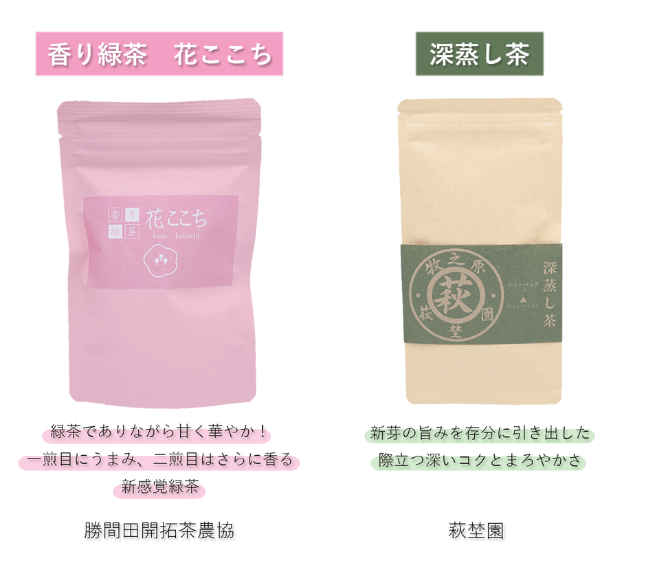 中でも「緑茶」は生の茶葉を加熱し、酸化酵素の働きを止めた「不発酵茶」を指します。(最後までは発酵させてから加熱すると「紅茶」になります)蒸気で加熱するお茶の中でも、2~3倍長く葉を蒸した「深蒸し茶」は、苦みが抑えられ深い味わいが特徴的です。今回は、お茶の名産地牧之原の美味しいお茶もリターンに加えました。